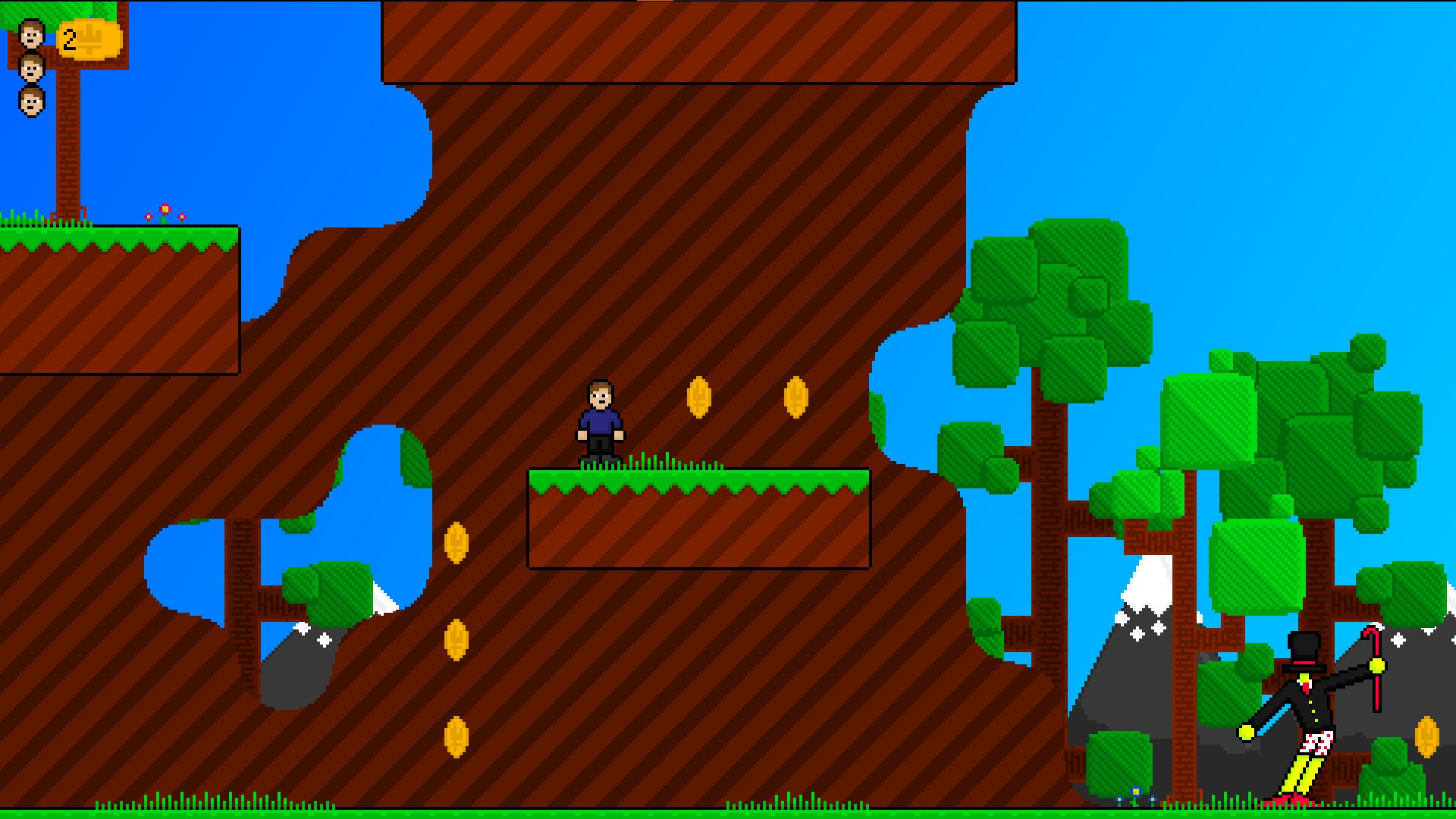 very fun game. great work on all the sprites and the level design felt very solid. there seems to be a bug where if you exit the main menu and come back the minecraft song plays extremely bass boosted.